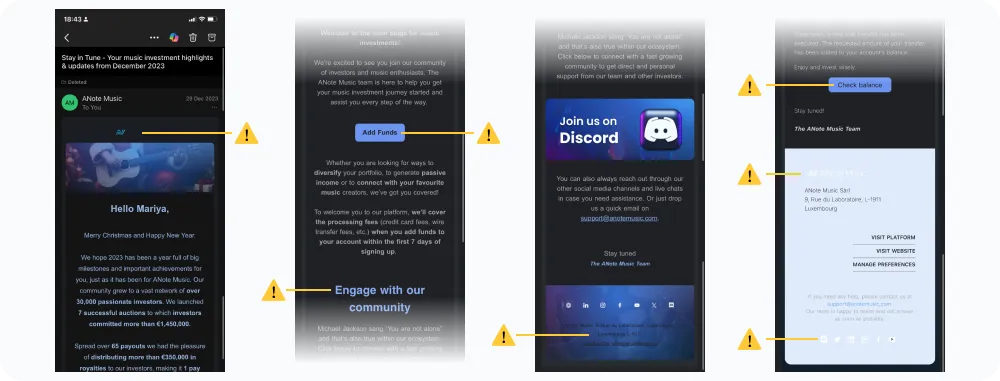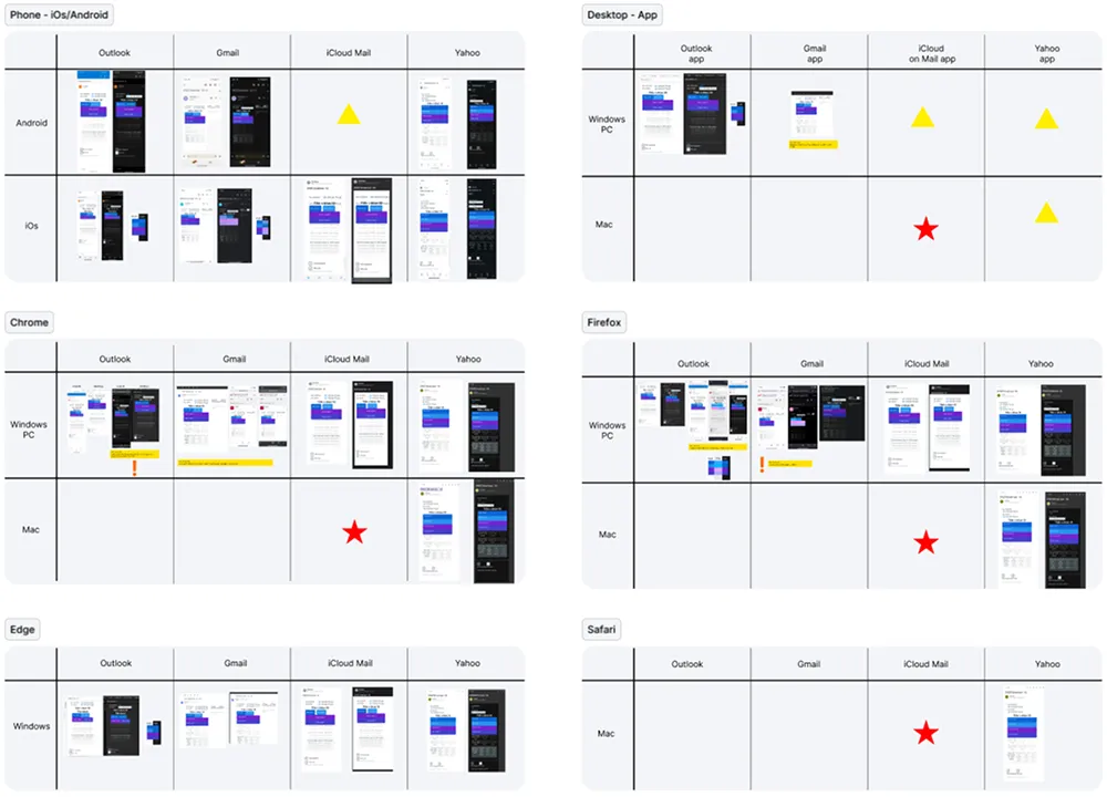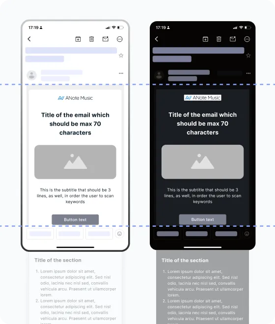Emails were tested across devices to ensure readability and consistency in both light and dark mode. At this stage we defined: