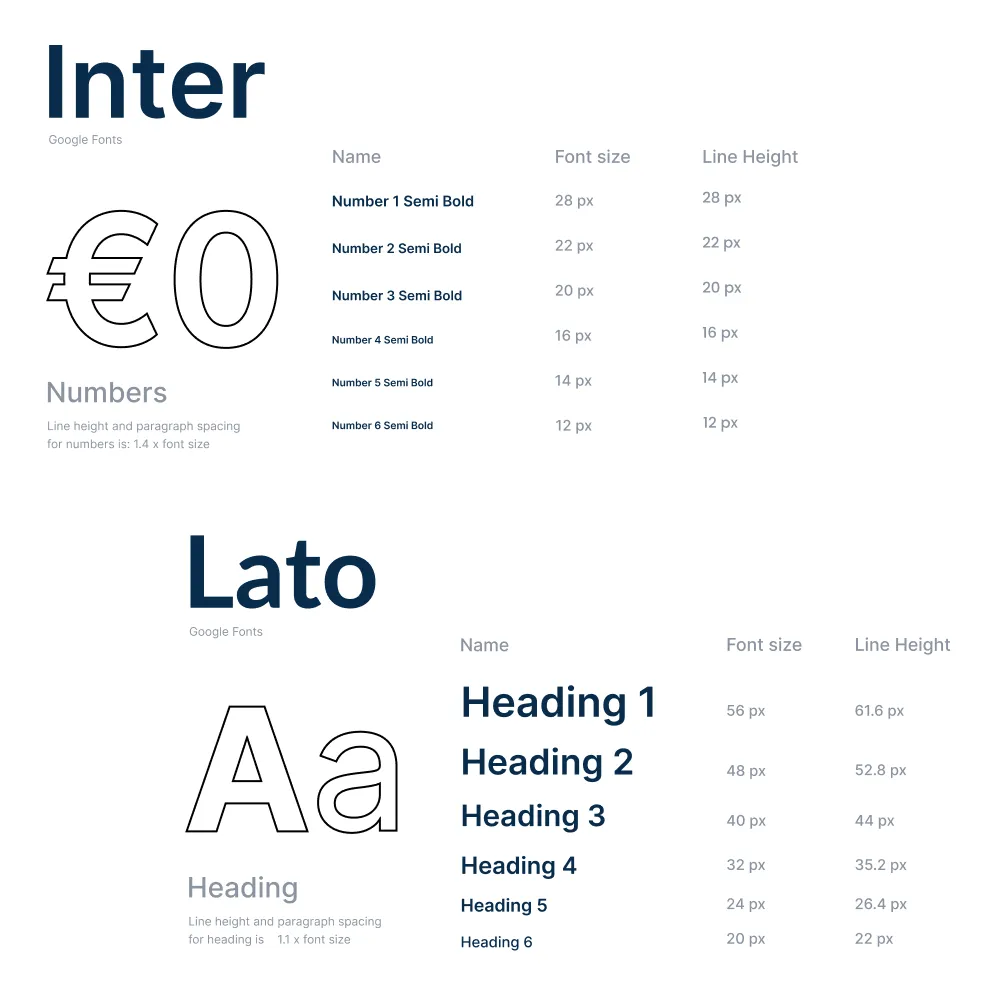 Typography plays a critical role in readability, usability and decision-making. Lato and Inter were selected due to: