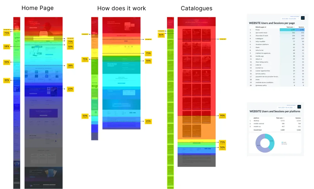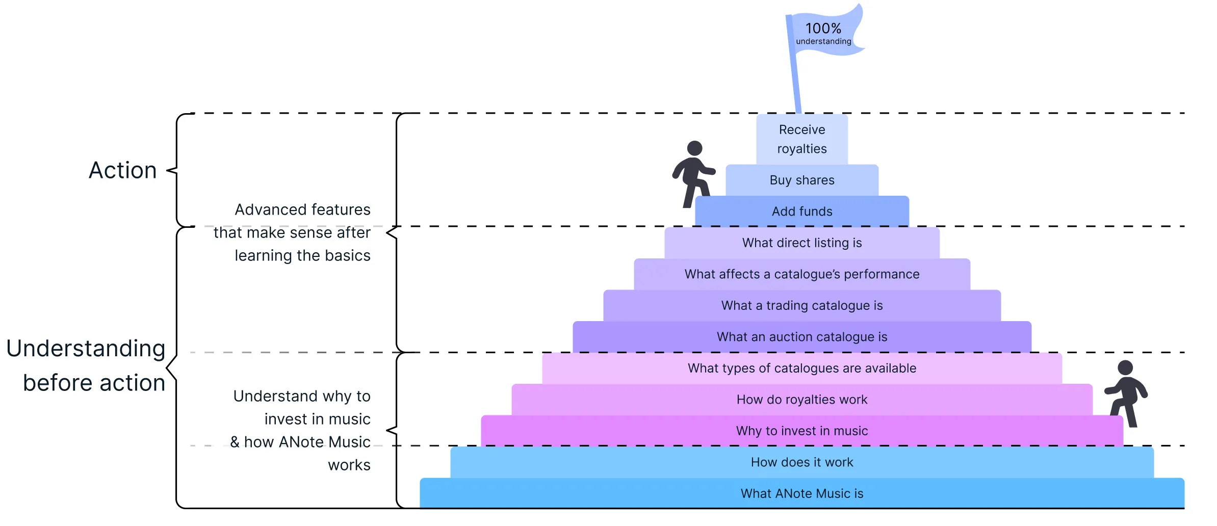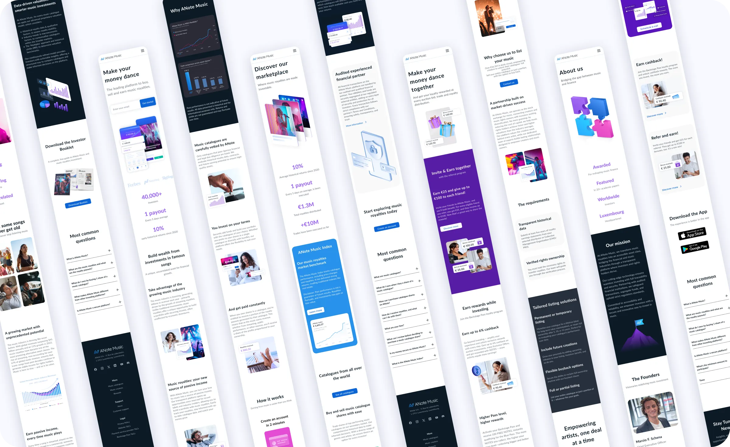 ANote Music is a music investment platform that enables users to purchase shares in music catalogues and earn monthly royalties from the songs’ performance within these catalogues. Usability testing conducted in 2024 revealed significant users' understanding issues around the music investing concept and the ANote Music product - starting from the website.